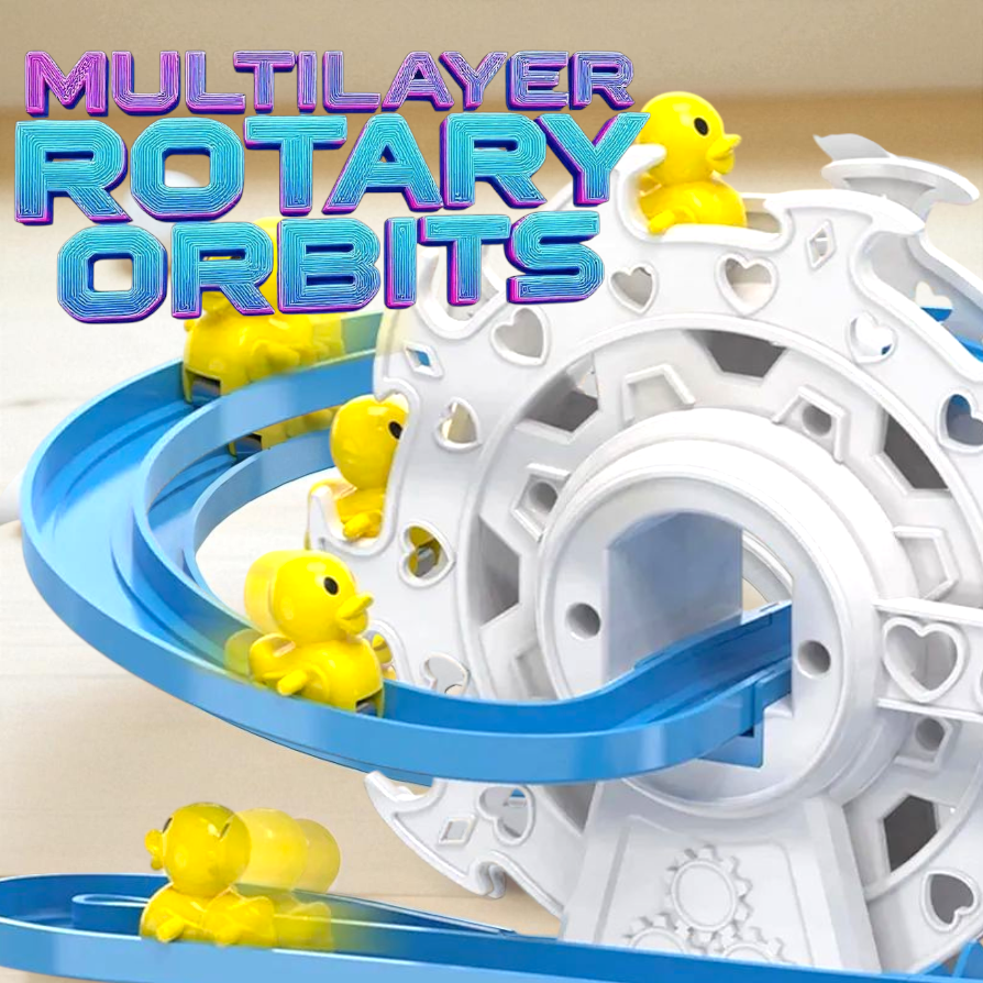 Small Duck Climbing Stairs Toy – Electric Happy Duck Ferris Wheel Track Slide with LED Lights & Music | Ideal Gift for Kids Age 3+