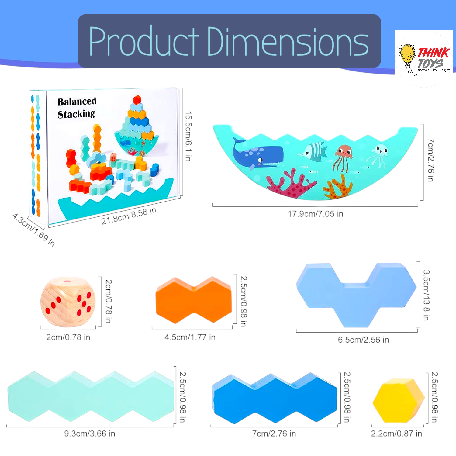 - Wooden Blocks Stacking and Balancing Game: Designed for both kids and adults, this exciting board game combines the thrill of dice rolling with the skillful art of block stacking. Made from durable wood with smooth surface and finish, ensuring safety and longevity.